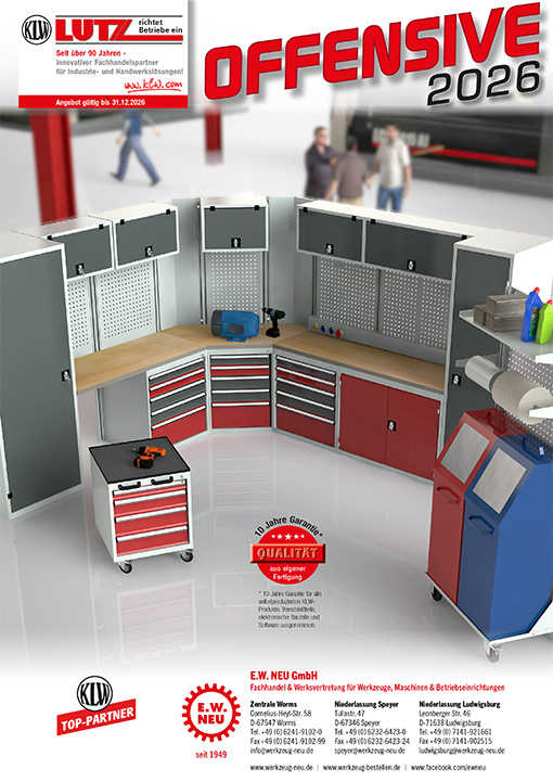 Die neusten Betriebseinrichtungen-Angebote ab sofort im neuen KLW-Prospekt. Unter anderem im Angebot: Schrankwände, Schubladenschränke, (konfigurierbare) Werkbänke, Metallwerkbänke, Lochplatten, Spänekipper, Transportgeräte, Schweißtische, Akten- und Universalschränke und vieles mehr!