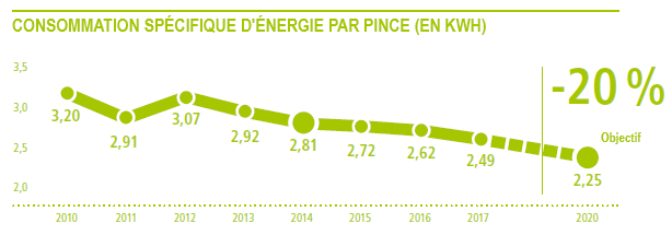 Figure: Consommation d'énergie de KNIPEX par pinces, d'après le rapport de durabilité 2020